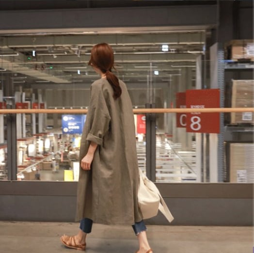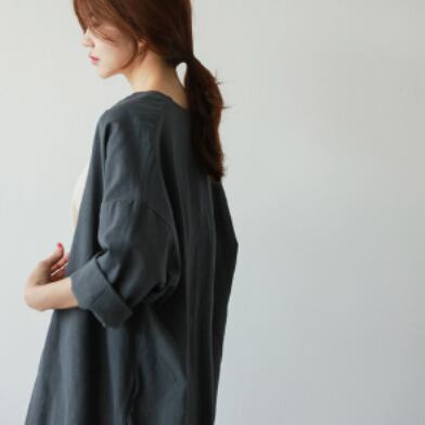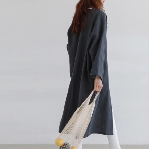 大人カジュアルにこなれ感をプラスするロング丈のワンピースです。3色展開(カーキ色、ネイビー、灰緑)からお選びいただけます。シンプルでメンズライクなデザインなので、オーバーサイズ感がこなれたスタイルを演出してくれます。春秋の一枚で買い物や通勤、休日のお出かけにも重宝します。
