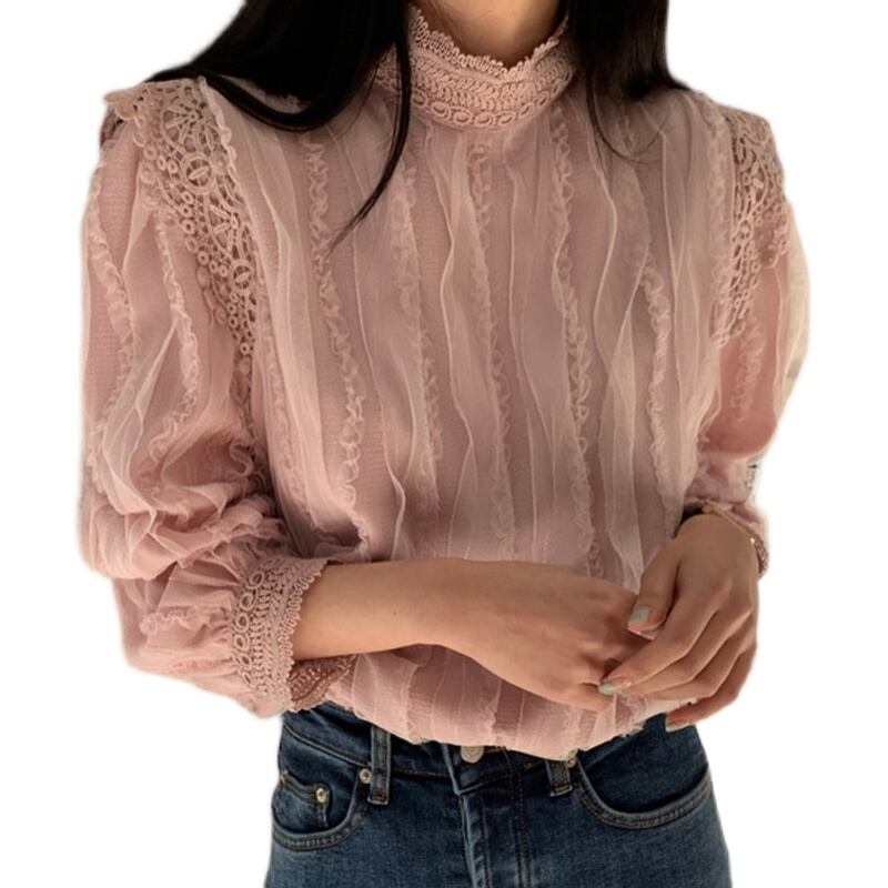 商品名:トップス シャツ ブラウス シフォンシャツ スタンドカラー バブルスリーブ 長袖 レース かわいい 大人可愛い きれいめ シンプル 大人 上品 おしゃれ 大人女子 こなれ感 秋 10代 20代 レディース 白 ホワイト 黒 ブラック ピンク くすみカラー 散歩 旅行 おうちコーデ 韓国 韓国系 オルチャン スタイルカバー 使いやすい デート お出かけ 公園デビュー 女子会 休日 アウトドア イベント 着回し 普段使い 楽ちん こなれ感
