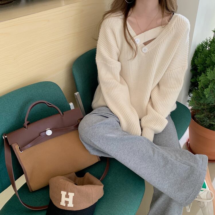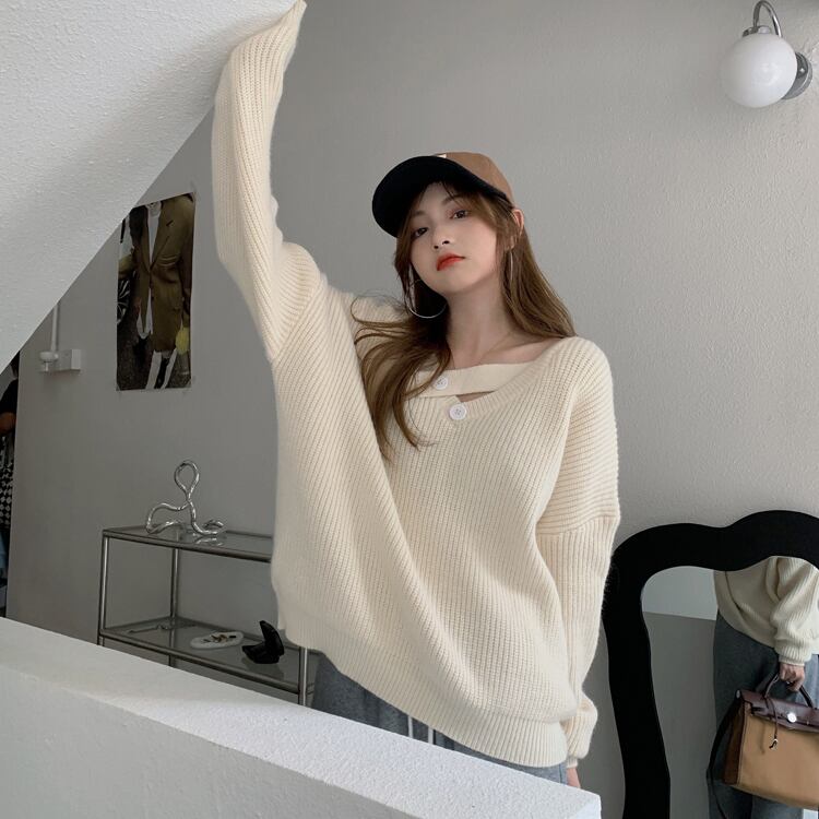このコーディネートの主役になれるトップスをお届けします。韓国流行のデザインで、大人可愛い印象を与える長袖セーターです。きちんと感のあるデザインで、通勤や学生さんの通学にもぴったり。どんなボトムスとも合わせやすい無地のカラーは、コーディネートの幅を広げてくれます。