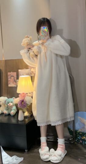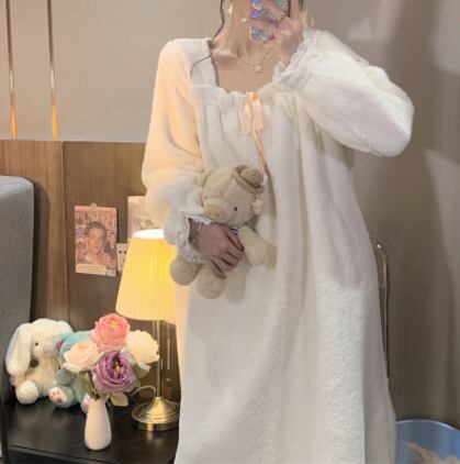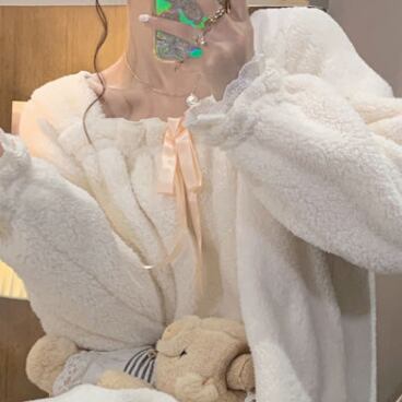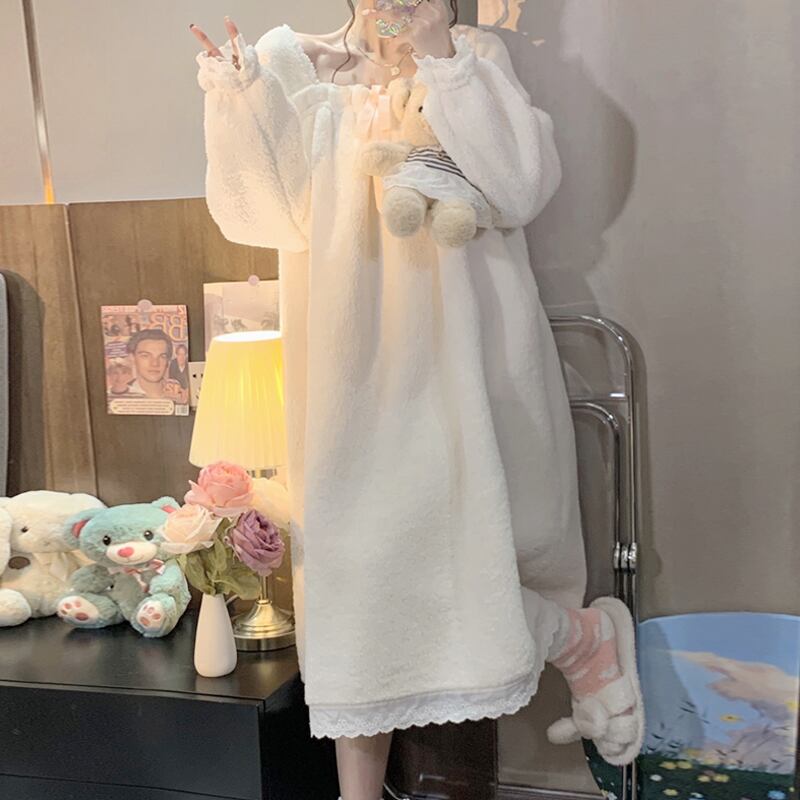 フリースパジャマ ネグリジェ 魅せる ルームウェア パジャマ ミドル丈 袖あり 長袖 スクエアネック モコモコ 大人女子 大人 上品 おしゃれ カジュアル レトロ レトロ風 こなれ感 ラフ ルーズ シルエット キュート ガーリー かわいい 女子 個性的 デザイン 主役級 存在感 ラブリー 無地 冬 10代 20代 レディース 女性用 休日 お泊まり 着回し 普段使い モテ トレンド ファッション コーデ らくちん 暖かい 防寒 体型カバー ワンサイズ ギフト 海外 イメチェン 好感度