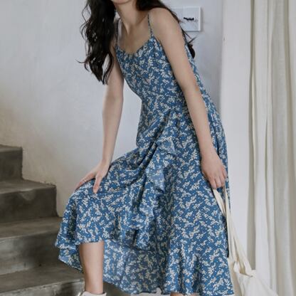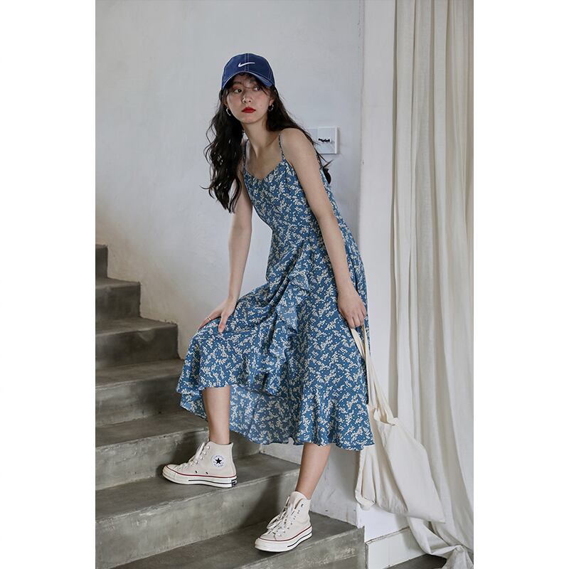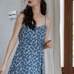 サマーワンピース 魅せる ワンピース ミドル丈 袖なし ノースリーブ フレア Aライン ポリエステル 大人女子 大人 上品 おしゃれ きれいめ シンプル カジュアル レトロ レトロ風 こなれ感 ラフ 個性的 デザイン 主役級 存在感 フェミニン 柄 花柄 フラワー 夏 10代 20代 レディース 女性用 学生 通学 デート お出かけ 女子会 イベント リゾート 旅行 着回し 普段使い モテ トレンド XS S M L ブルー 簡単コーデ ギフト 海外
