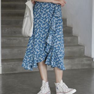 巻きスカート風のデザインでフリルが華やかな印象に♪