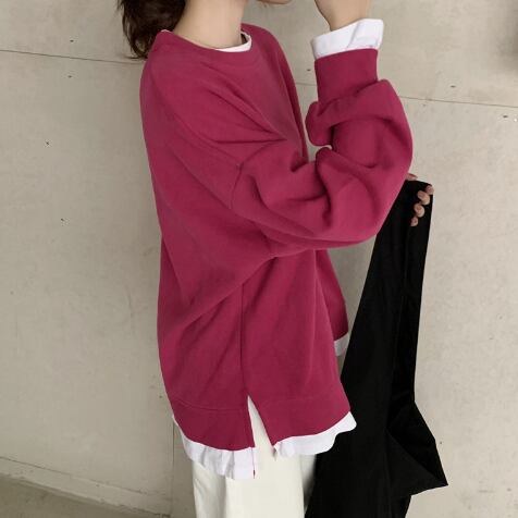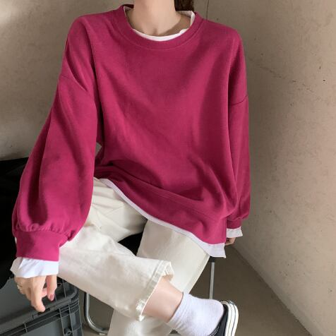 トップス カットソー プルオーバー トレーナー ボリューム袖 ドルマンスリーブ ラウンドネック 厚手 カジュアル かっこいい こなれ感 スポーティー 無地 秋 冬 10代 20代 休日 着回し 普段使い 重ね着 お揃い 双子 韓国 オルチャン 体系カバー S M L XL 大きめ ビッグサイズ ゆったり ゆる レッド ブルー パープル ピンク グレー 個性的 女の子プレゼント 安いお得 合わせやすい 低価格 コスパ 値段重視 低予算 インポート 簡単 ギフト 海外 イメチェン 好感度 イメージアップ