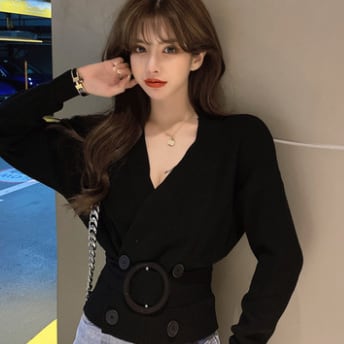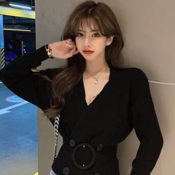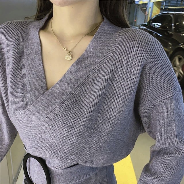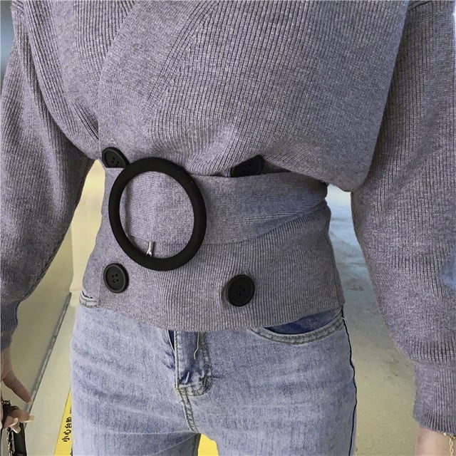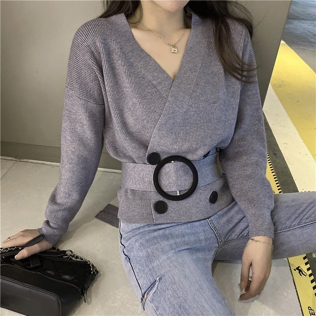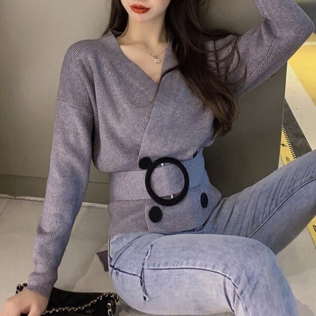 Vネック ニット フレンチ ジェントル ストリート トップス 秋 冬 ニュースタイル ウエストシンニング ベースシャツ レディース グレーブラック S M L XL ベルト 長袖 新作 オトナモード クール スタイリッシュ かわいい 大人可愛い きれいめ 大人 上品 おしゃれ かっこいい 大人女子 こなれ感 セクシー エレガント 10代 20代 30代 OL 通勤 学生 通学 デート お出かけ 女子会 パーティー イベント リゾート 旅行 着回し 普段使い 韓国系 オルチャン ファッション コーデ モテ