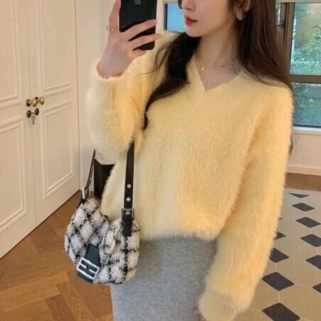 このトップスは、今大人気のVネックで、女性らしさをアピールすることができます。また、長袖で暖かく、シャギーニット素材のため肌触りも良く、着心地抜群!お手入れも簡単で、洗濯機で洗えるので、忙しい女性にもオススメです。
