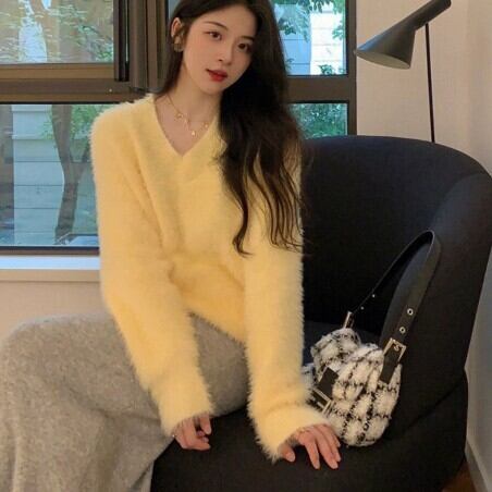 Vネックで萌え袖が可愛いウールのシャギーニット。季節を問わず、こなれたおしゃれスタイルが楽しめる。