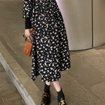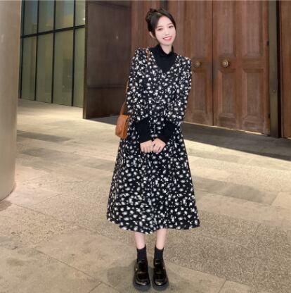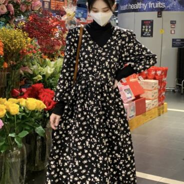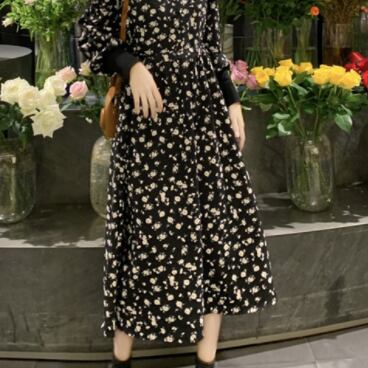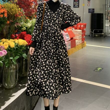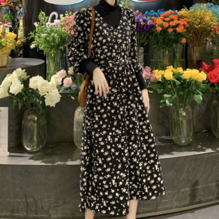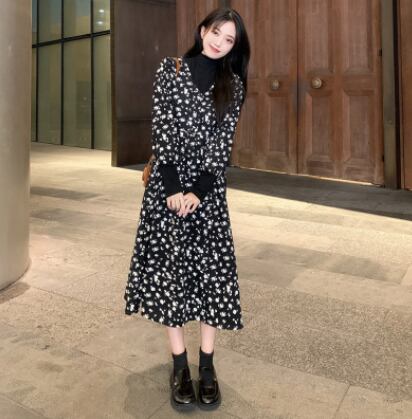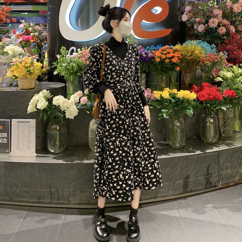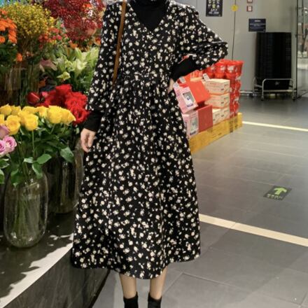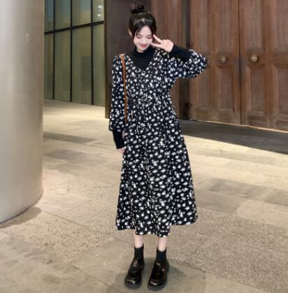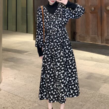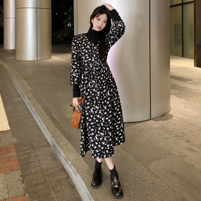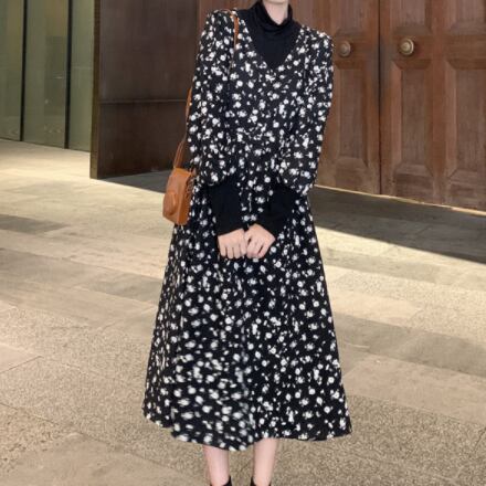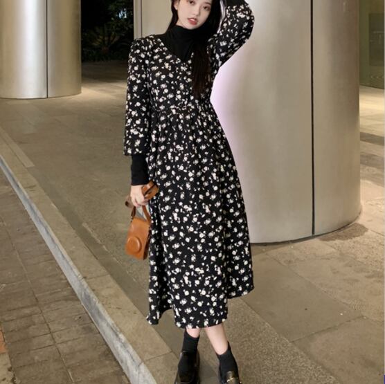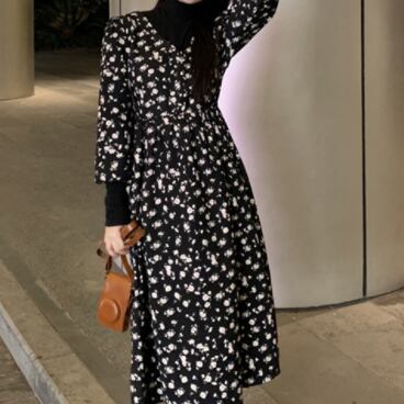 長袖ワンピース フェイクレイヤード 魅せる ワンピース ロング丈 ミディアム丈 袖あり 長袖 ハイネック フレア Aライン ウエストマーク 大人女子 大人 上品 おしゃれ きれいめ シンプル エレガント レトロ レトロ風 こなれ感 ラフ ルーズ シルエット キュート ガーリー かわいい 女子 個性的 デザイン 主役級 存在感 ラブリー フェミニン 柄 花柄 フラワー 秋 冬 10代 20代 30代 レディース 女性用 着回し 普段使い ワンサイズ ブラック 新品 目玉 母の日