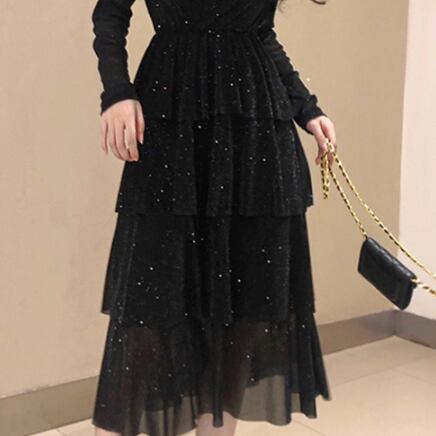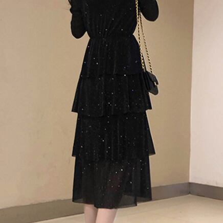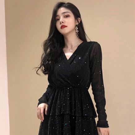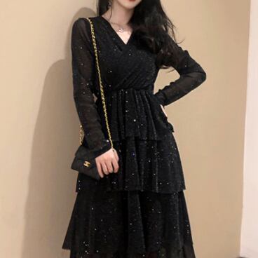 この長袖ワンピースは、魅せるドレスとしても使える大人女子にピッタリのアイテムです。Vネックとフレアデザインが上品でエレガントな印象を与え、フリルのデザインで女性らしさもプラスされています。シンプルながらもレトロ風のデザインで、個性的な雰囲気があります。