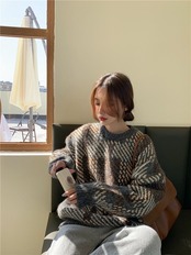 甘すぎず、大人っぽさがある柄物セーターが新登場!鮮やかなグレーアプリコットのカラーと繊細な柄が、秋冬のコーディネートに華やかさをプラスしてくれます。韓国流行のデザインで、個性的な印象に。これ一枚で、コーディネートの主役になれます。