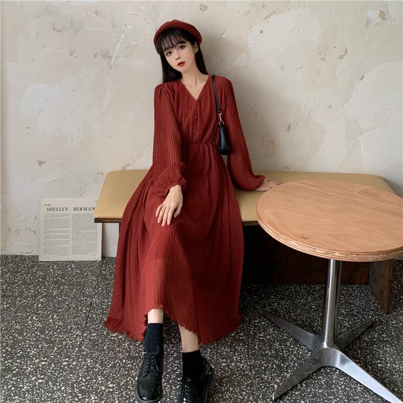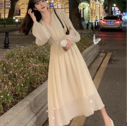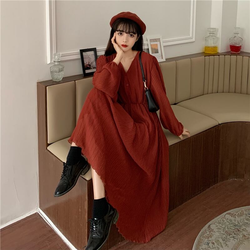 目を引くAラインロングワンピース