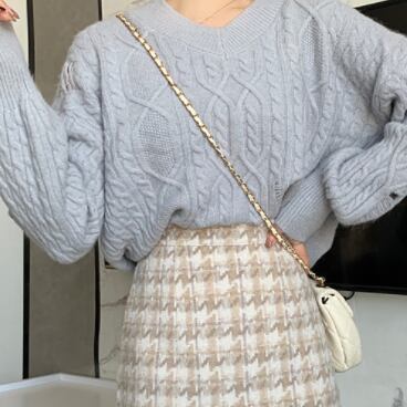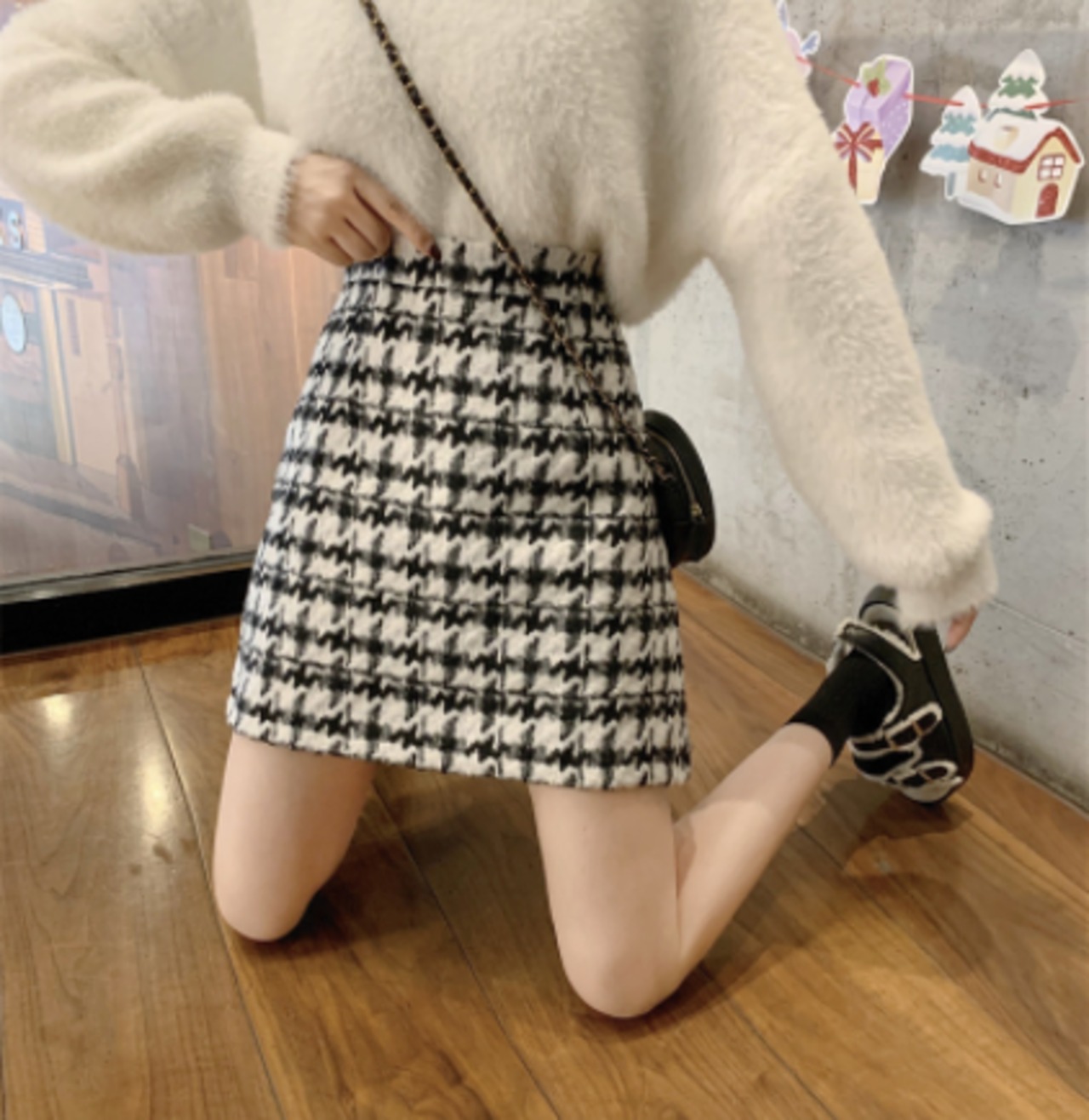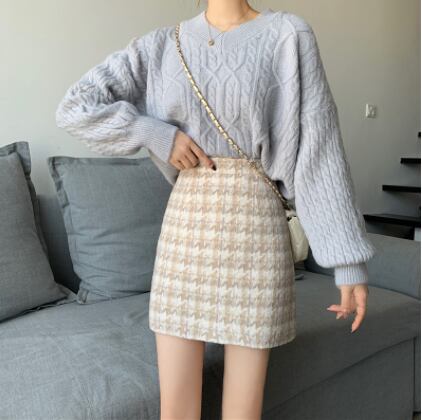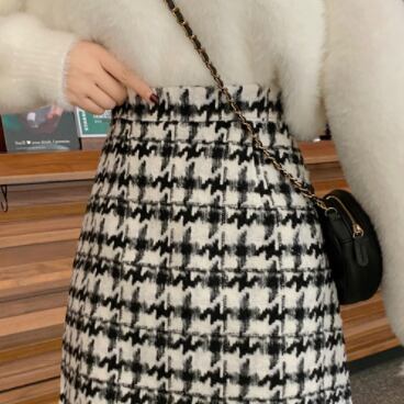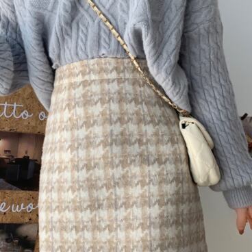 千鳥格子ウールスカート