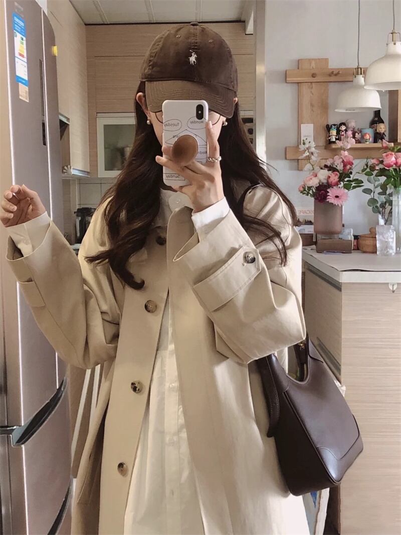 ウィンドブレーカー スプリングコート 魅せる アウター ミディアム丈 膝下 袖あり 長袖 襟付き ストレート シングルブレスト ボタン 大人女子 大人 上品 おしゃれ かっこいい クール きれいめ シンプル カジュアル レトロ レトロ風 こなれ感 ラフ ルーズ シルエット 個性的 デザイン 主役級 存在感 無地 柄 チェック柄 春 秋 10代 20代 30代 レディース 女性用 ママ 通勤 学生 通学 着回し 普段使い トレンド ファッション コーデ 暖かい 防寒 ワンサイズ ブラウン