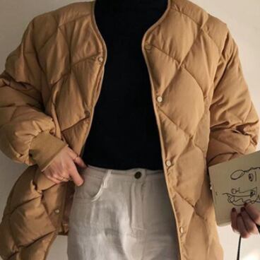 秋定番カラーのダウン風ジャケットです。