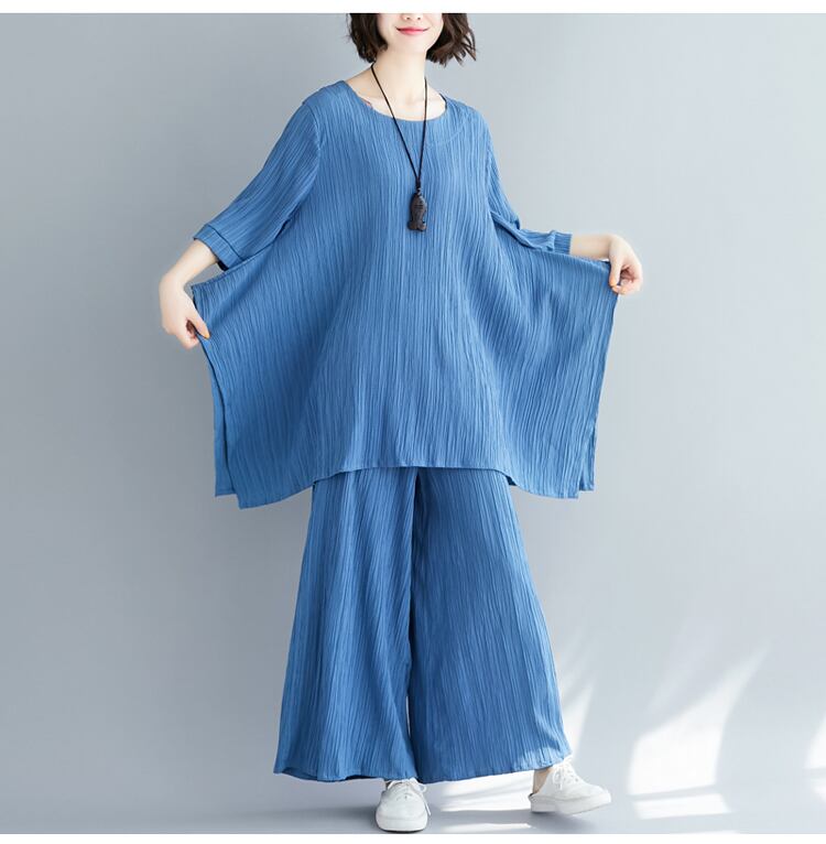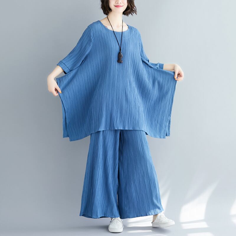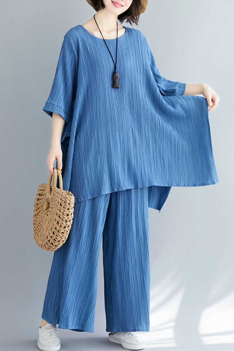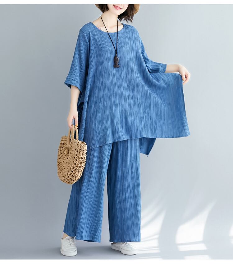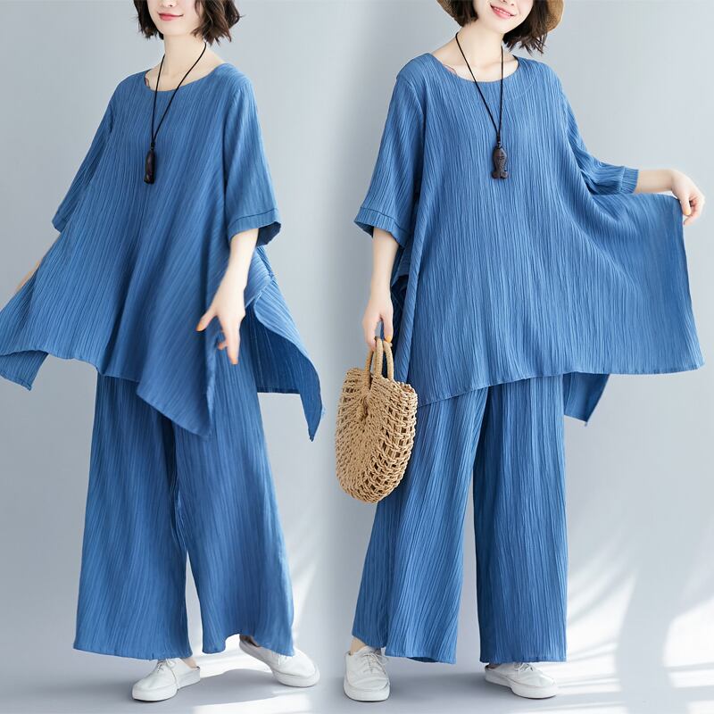 セットアップ ビッグT ワイドパンツ 7分袖 ラウンドネック ワイド 薄手 上下セット かわいい 大人可愛い きれいめ シンプル 大人 上品 おしゃれ お洒落 大人女子 こなれ感 ラフ 無地 春 夏 10代 20代 30代 レディース デート お出かけ 公園デビュー 女子会 お泊まり 休日 アウトドア 普段使い ファッション コーデ スタイル 楽ちん 体系カバー プチプラ 送料無料 M L XL 2XL ゆったり ゆる 青 ブルー 注目 大特価 人気 新作 話題 新入荷 今だけ 新品 目玉 母の日