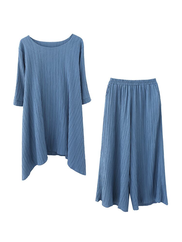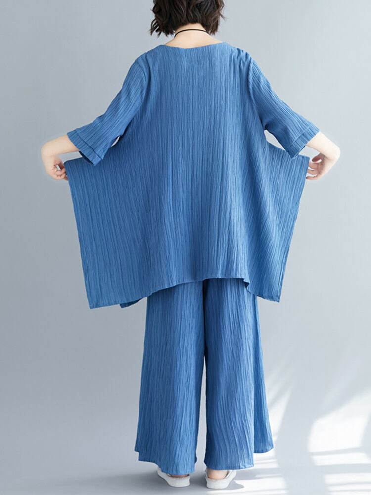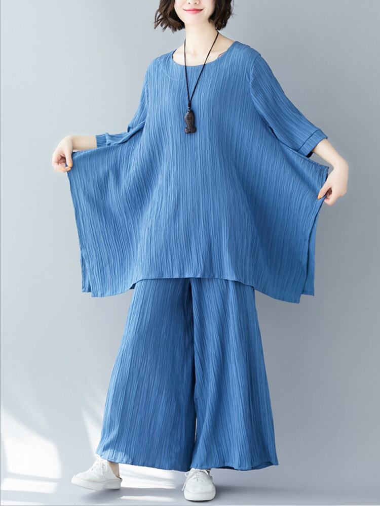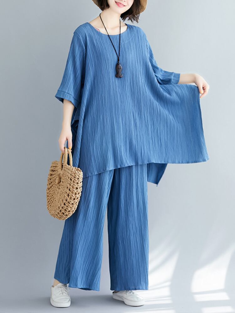 セットアップ ビッグT ワイドパンツ 7分袖 ラウンドネック ワイド 薄手 上下セット かわいい 大人可愛い きれいめ シンプル 大人 上品 おしゃれ お洒落 大人女子 こなれ感 ラフ 無地 春 夏 10代 20代 30代 レディース デート お出かけ 公園デビュー 女子会 お泊まり 休日 アウトドア 普段使い ファッション コーデ スタイル 楽ちん 体系カバー プチプラ 送料無料 M L XL 2XL ゆったり ゆる 青 ブルー 注目 大特価 人気 新作 話題 新入荷 今だけ 新品 目玉 母の日