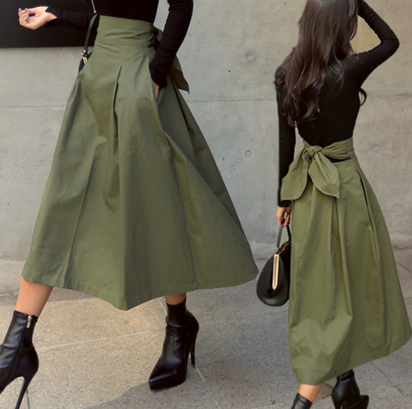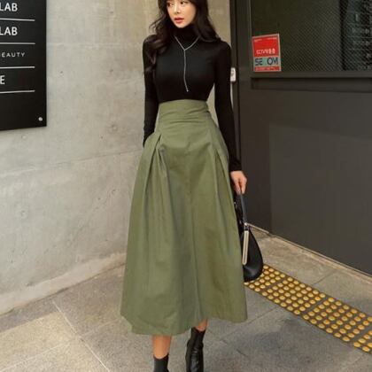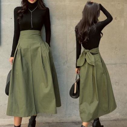 大人可愛いロングフレアスカートが入荷!ウエストはリボン付きで、バックリボンでアレンジもできて、セミフレアのAラインシルエットが女性らしさを引き立てます。シンプルなデザインなので、どんなトップスとも相性抜群。オフィスやビジネスシーンでも着られ、デートや女子会などのおしゃれイベントでも主役級に。秋カラーの深緑色も大人っぽい色味で、幅広い年齢層におすすめです。着回しもきくので、普段使いにもぴったり!S,M,L,XLの4サイズ展開で、価格も低予算でお買い求めやすいのが魅力。海外からのインポートで、イメージアップにも効果的。お手頃価格で注目されている大特価商品です。新作商品なので、話題になる前にGETしてくださいね!※画像はイメージです。実際の商品と異なる場合がございますので、予めご了承ください。