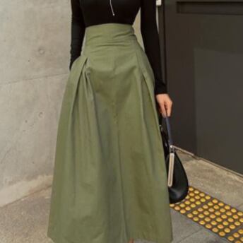 大人見えなシンプルロングスカートです。