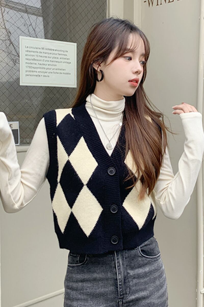注文前に必ずサイズチャートを確認ください。送料無料でお届けします。この冬は、トレンド感たっぷりのチェック柄ニットベストで、おしゃれに決めてください!