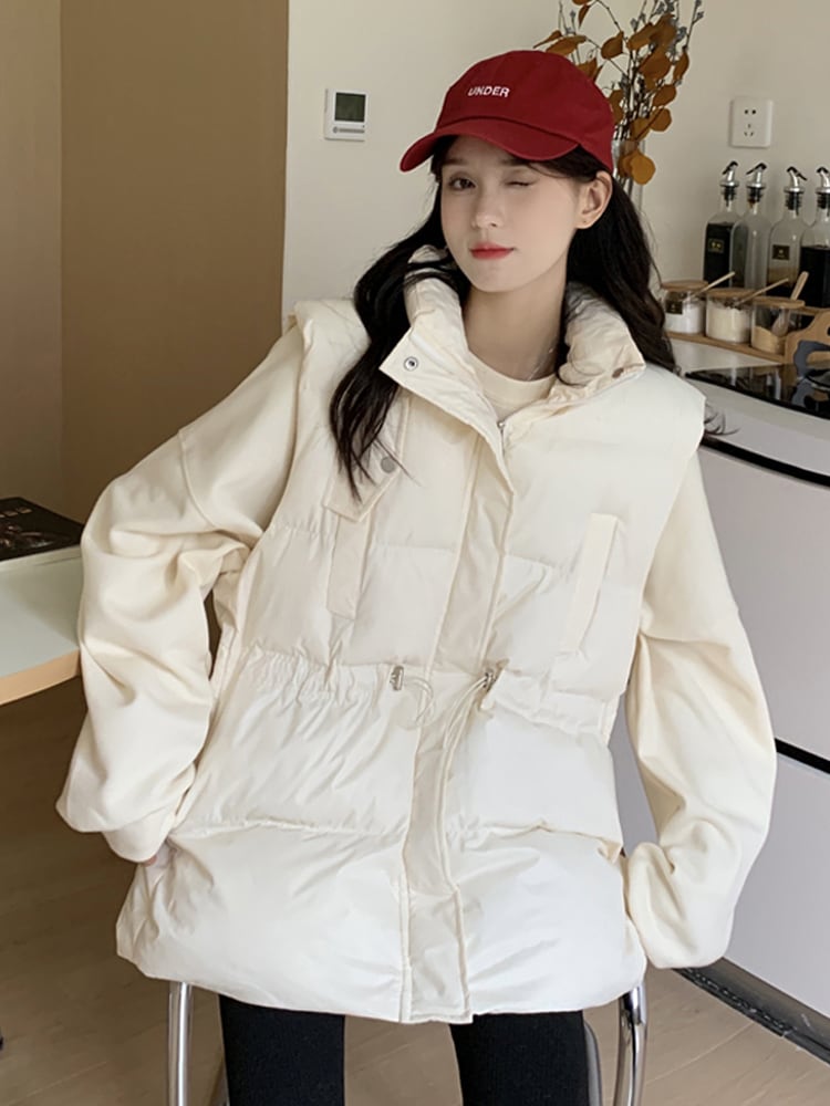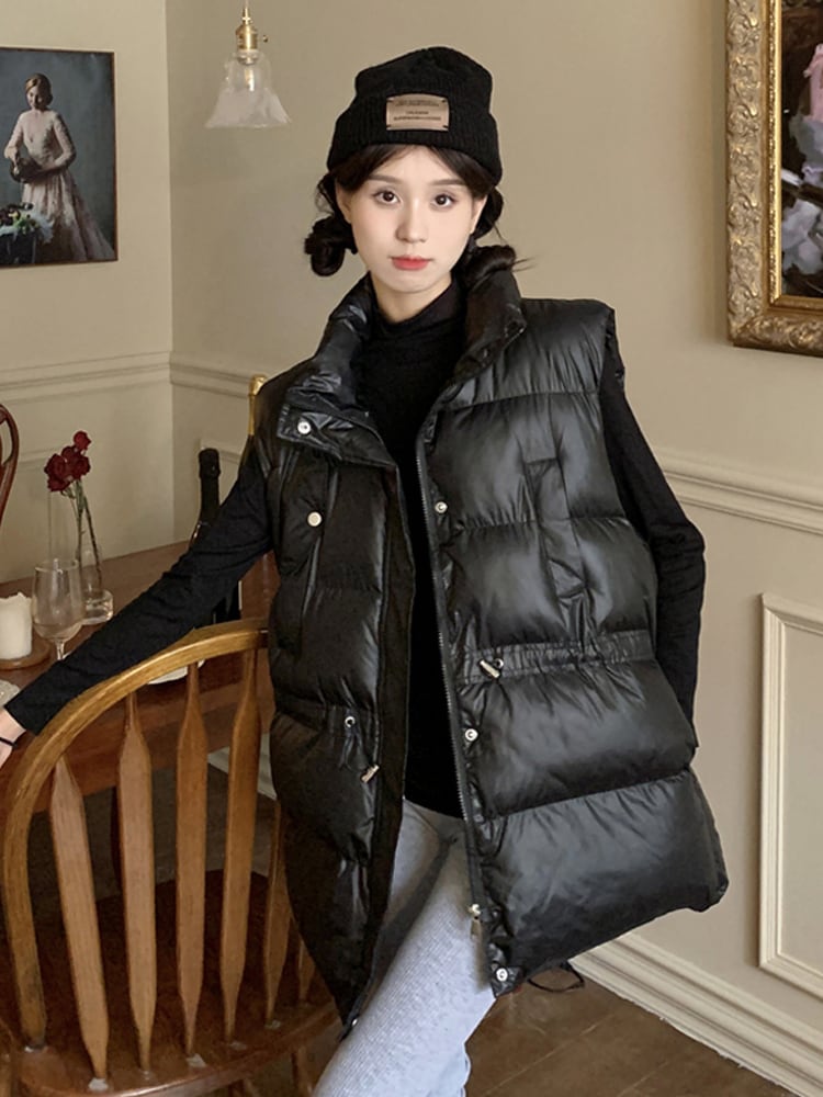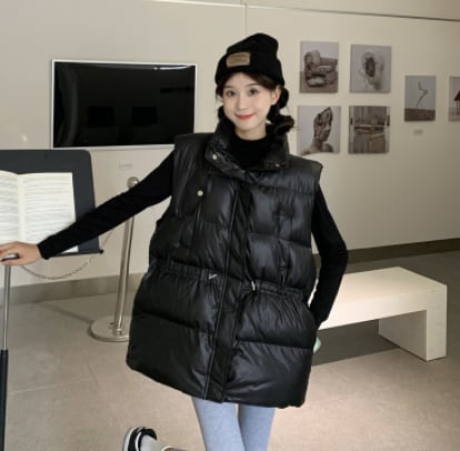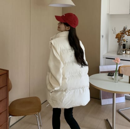 シンプルながら高い存在感を放つ中綿ベスト。細身のシルエットが、大人女子にぴったりの上品でおしゃれな雰囲気を作り出します。