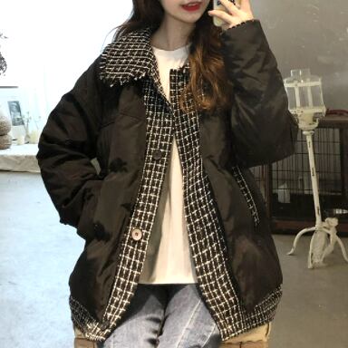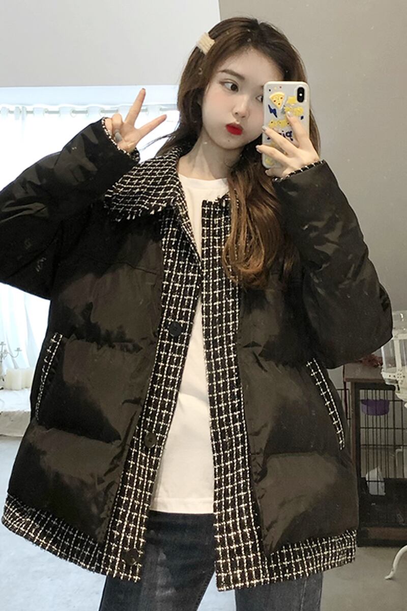中綿入ジャケット 魅せる アウター コート ジャケット レギュラー丈 袖あり 長袖 襟付き ストレート シングルブレスト ボタン ポケット 綿 コットン 大人女子 大人 上品 おしゃれ かっこいい クール カジュアル レトロ レトロ風 こなれ感 ラフ ルーズ シルエット 個性的 デザイン 主役級 存在感 柄 チェック柄 格子柄 秋 冬 10代 20代 30代 40代 レディース 女性用 ママ 通勤 学生 通学 着回し 普段使い ファッション コーデ 暖かい 防寒 ワンサイズ ブラック
