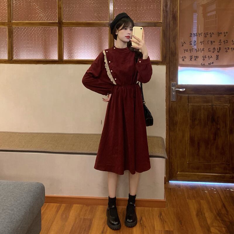 品名長袖ワンピースは、魅力的なデザインが詰まった主役級のアイテムです。ミディアム丈とフレアのAラインシルエットは、大人女子にふさわしい上品さがあります。ラウンドネックに袖あり、しっかりとしたデザインで着こなしやすさがあります。ウエストに取り付けられたベルトは、秋冬のラフなスタイルにも合わせることができ、丁寧な仕立てでエレガントな印象を醸し出します。フリルとボタンのデザインも可愛らしさをプラスし、レトロ風のこなれ感を演出しています。無地のシンプルさは、おしゃれな洋服として常に存在感を出してくれます。10代からの20代女性まで、大きいサイズまで豊富なサイズを取り揃えており、お出かけや女子会など幅広く活躍します。この一枚で、大人の上品さと可愛らしさ、そしてこなれ感を手に入れることができるでしょう。