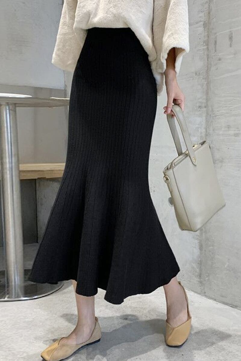 スカート ニットスカート 膝下 トランペット ミモレ丈 細身 ニット かわいい 大人可愛い きれいめ シンプル 大人 上品 おしゃれ お洒落 大人可愛い 大人女子 こなれ感 ラフ メンズライク エレガント 抜け感 無地 秋 冬 10代 20代 30代 学生 通学 デート お出かけ 女子会 お泊まり 休日 イベント ファッション コーデ スタイル 楽ちん 暖かい 防寒 モテ 体系カバー 美脚 脚長 プチプラ 送料無料 トレンド 流行 インスタ映え ゆったり 白 ホワイト 黒 ブラック
