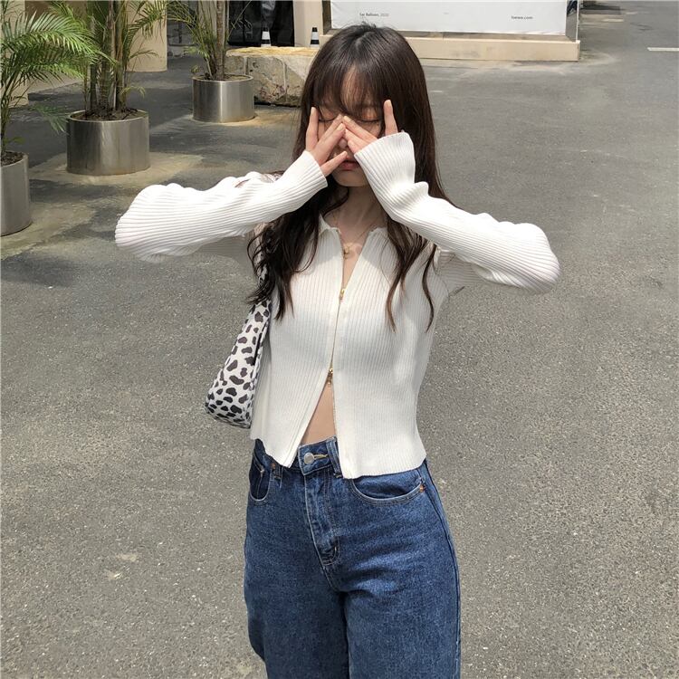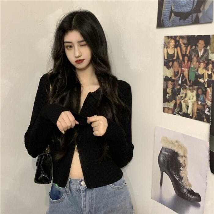 トップス セーター カーディガン ショート丈 萌袖 襟付き タイト 細身 ファスナー 前開き ニット かわいい 大人可愛い きれいめ シンプル カジュアル 大人 上品 おしゃれ お洒落 大人可愛い 大人女子 こなれ感 ラフ メンズライク 無地 春 秋 10代 20代 レディース 学生 通学 デート お出かけ 公園デビュー 女子会 お泊まり イベント 普段使い 重ね着 ファッション コーデ スタイル 楽ちん モテ プチプラ 送料無料 トレンド 流行 インスタ映え 白 ホワイト 黒 ブラック 青 ブルー