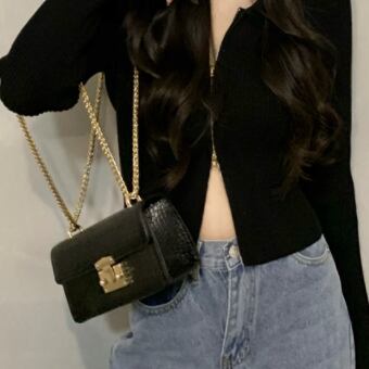 襟付きでコンパクトなショート丈、萌袖がおしゃれな印象を与えます。タイトで細身のシルエットとファスナー前開きが、女性らしい曲線美を引き立てます。