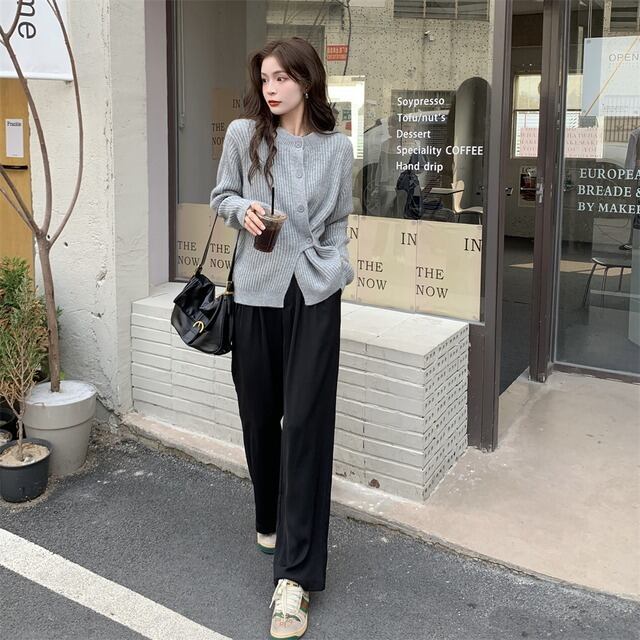 このカーディガンは、シンプルな無地のデザインが魅力。リブデザインが施された袖や、前開きのボタンなど、細部にもこだわりがあり、きちんと感や女性らしさを演出できます。襟がないため、スッキリとした印象になり、幅広いシーンで活用できるアイテムです。着方も2wayで、羽織りとしてもトップスとしても着用可能。緩やかにギャザーが入るので、上品かつラブリーな印象も与えます。10代から30代まで、幅広い年齢層が着こなせる大人かわいいデザインです。ストレートなシルエットで、こなれ感を演出できる一方、ゆったりとしたサイジングが抜け感を提供します。楽ちんでありながら、エレガントな雰囲気も感じられるため、パーティーやイベントなど、特別な場面でも活躍します。おしゃれで着回しのきくアイテムとして、ぜひワードローブに取り入れてみてください。