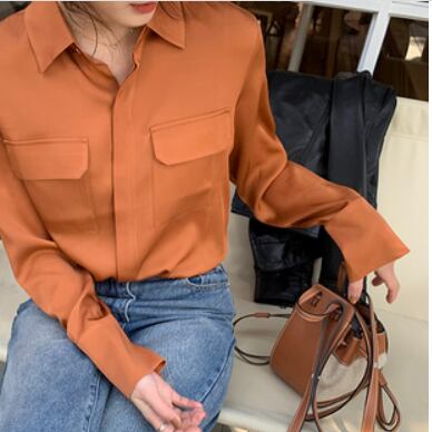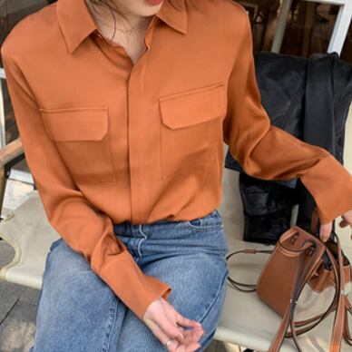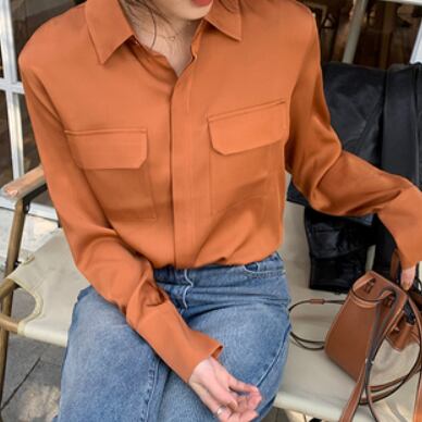 長袖シャツ トップス ブラウス シンプル グリーン ブラック ホワイト オレンジ レギュラー丈 袖あり 長袖 襟付き ストレート シングルブレスト ボタン 大人女子 大人 上品 おしゃれ きれいめ シンプル エレガント レトロ レトロ風 こなれ感 ラフ 個性的 デザイン 主役級 存在感 無地 春 スプリング 秋 オータム 10代 20代 30代 40代 レディース 女性用 オフィス ビジネス OL 通勤 着回し 普段使い ファッション コーデ 定番 S M L XL くすみカラー