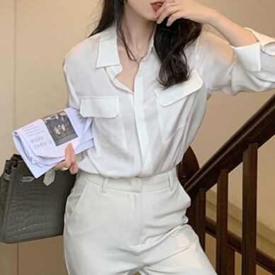 ご覧いただきありがとうございます。この度は当店でおすすめする、大人女性にぴったりなシンプルな長袖シャツをご紹介いたします。