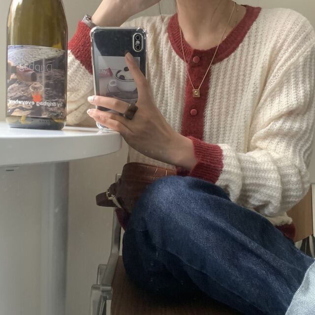 短め丈が可愛らしい、畔編みがアクセントのバイカラーカーディガンが登場!寒色系と暖色系の色合わせが印象的なライン入りの配色ニットです。リブ袖で袖口もキュッと絞られていて、女性らしいシルエットに仕上がっています。バイカラーだからこの一枚でコーディネートのアクセントになり、重ね着にも好相性。色とりどりのお洋服とも、ベーシックなスタイルとも相性が良いので、オフィスカジュアルはもちろん、休日の公園デビューやデート、1マイルスタイルにもぴったりです!