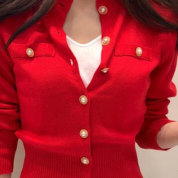 トップス レディース カーディガン 袖あり 長袖 襟なし ボタン 前開き パール ニット 羽織 黒 ブラック 赤 レッド かわいい 大人可愛い 大人 大人女子 きれいめ おしゃれ お洒落 シンプル ラブリー キュート ガーリー 10代 20代 30代 通勤 学生 通学 デート お出かけ 女子会 休日 イベント 普段使い カジュアル こなれ感 ラフ ルーズ 抜け感 ゆったり ゆる 上品 エレガント 暖かい あったか 個性的 旅行 モテ 着回し
