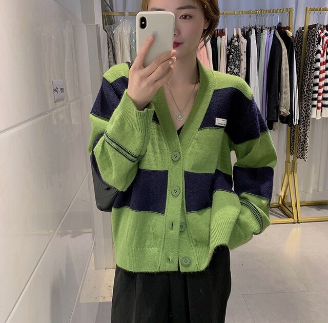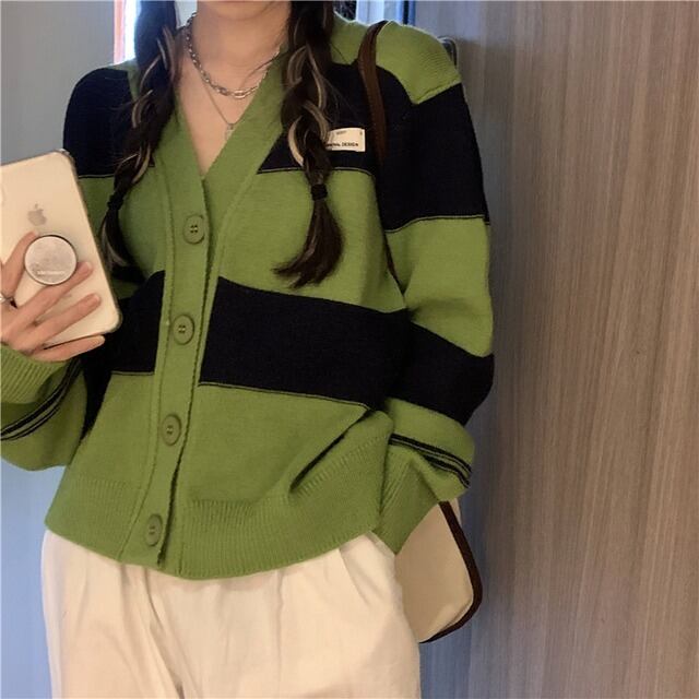 カーディガン レディース トップス 上着 羽織り 袖あり 長袖 ボリューム袖 萌袖 襟なし Vネック ワイド ボタン 緑 グリーン 黒 ブラック ボーダー ツートンカラー もこもこ かわいい 大人可愛い 大人 大人女子 きれいめ おしゃれ お洒落 シンプル メンズライク マニッシュ ボーイッシュ レトロ 10代 20代 30代 通勤 学生 通学 デート お出かけ 女子会 休日 イベント 普段使い カジュアル こなれ感 ラフ ルーズ 抜け感 ゆったり ゆる 大きいサイズ 大きめ 楽ちん