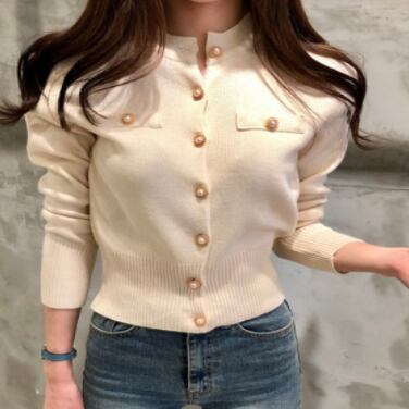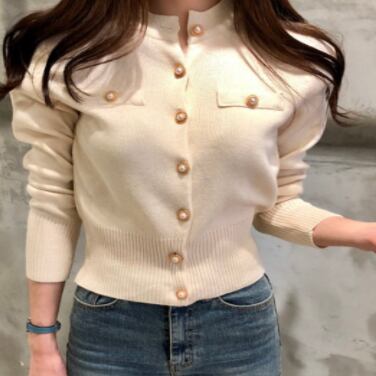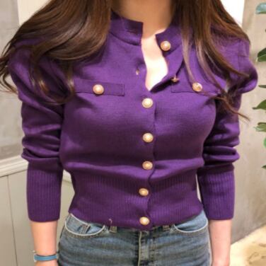 トップス レディース カーディガン 袖あり 長袖 襟なし ボタン前開き パール ニット 羽織 黒 ブラック アプリコット 紫 パープル かわいい 大人可愛い 大人 大人女子 きれいめ おしゃれ お洒落 シンプル ラブリー キュート ガーリー 10代 20代 30代 通勤 学生 通学 デート お出かけ 女子会 休日 イベント 普段使い カジュアル こなれ感 ラフ ルーズ 抜け感 ゆったり ゆる 上品 エレガント 暖かい あったか 個性的 旅行 モテ 着回し