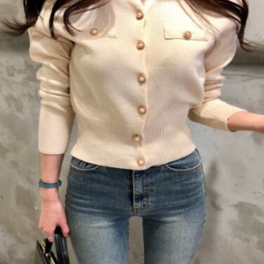 パール風ボタンがキラリと光る