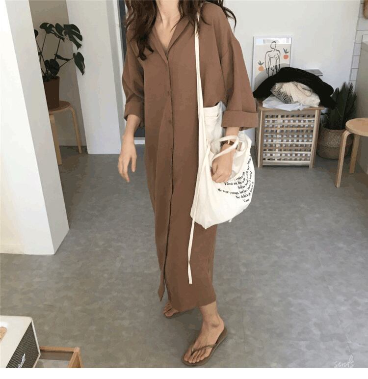 トップス ワンピース シャツ シャツワンピース 膝下 ロング ロング丈 7分袖 前開き 2way 薄手 かわいい 大人可愛い きれいめ シンプル カジュアル 大人 おしゃれ お洒落 大人可愛い 大人女子 こなれ感 ラフ メンズライク 主役級 存在感 抜け感 無地 春 秋 10代 20代 30代 レディース デート お出かけ 女子会 お泊まり 休日 リゾート 着回し 普段使い コーデ スタイル 楽ちん 体系カバー 定番 送料無料 S M L XL 2XL 黒 ブラック 茶色 ブラウン