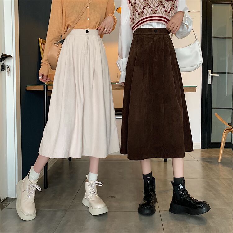 レトロな雰囲気が魅力のコーデュロイハイウエストアンブレラスカート。長めの丈で女性らしさを演出し、Aラインシルエットで体型をカバーしてくれます。カジュアルにもきれいめにも合わせやすく、低価格ながらも高品質なので、オンラインショッピング初心者の方にもおすすめです。春夏秋冬、トップス次第で季節感漂うスタイルを作り出してください。