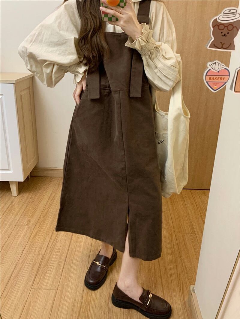 レトロ かわいい サスペンダー ストラップスカート ワンピース 膝下 ロング ロング丈 大人可愛い シンプル カジュアル おしゃれ お洒落 大人女子 ラフ メンズライク ボーイッシュ スポーティー キュート ガーリー ルーズ 個性的 存在感 無地 春 秋 10代 20代 学生 通学 デート お出かけ 女子会 休日 普段使い コーデ 楽ちん 体系カバー プレゼント ギフト 新作 定番 プチプラ 安い トレンド おすすめ インポート 海外 話題 フリーサイズ ゆったり ゆる 茶色 ブラウン 秋カラー コーヒー