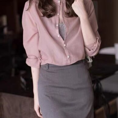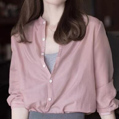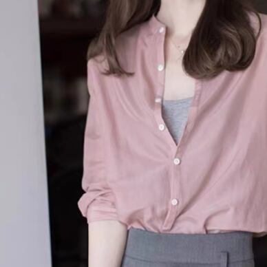 商品名にもある通り、こちらのシャツはシンプルで上品なデザインが特徴です。大人女子にぴったりのアプリコットやブルーのくすみカラーが目を引く一枚。シンプルながらもこなれ感があり、レギュラー丈のストレートシルエットが体型カバーもしてくれます。レトロ風のデザインは主役級の存在感があり、OLや通勤ファッションにもぴったり。無地なので着回しもしやすく、おしゃれなコーディネートにも活躍してくれます。春から秋まで長く着られる一枚で、くすみカラーがトレンド感あふれる雰囲気を演出。幅広い年代層に、ぜひ愛される定番シャツとなってください。