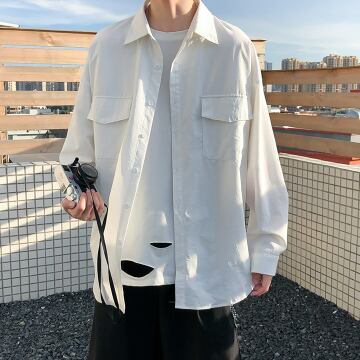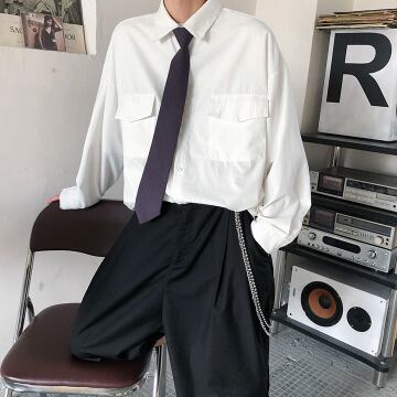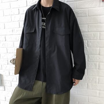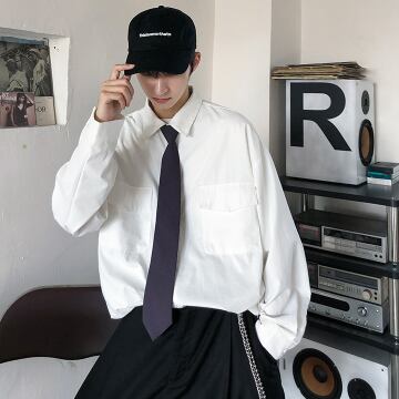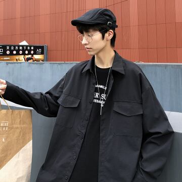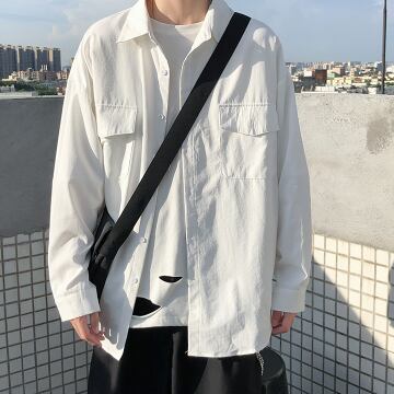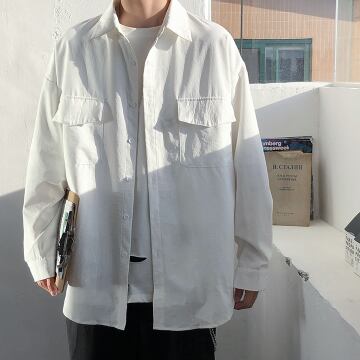 長袖シャツ シンプル トップス シャツ ブラウス 白シャツ 白トップス レギュラー丈 袖あり 長袖 襟付き ストレート シングルブレスト ボタン ポケット ポリエステル かっこいい クール きれいめ シンプル カジュアル レトロ レトロ風 こなれ感 ラフ ルーズ シルエット 主役級 存在感 ストリート 無地 春 秋 10代 20代 30代 メンズ 男性用 通勤 学生 通学 着回し 普段使い 3XL 4XL 5XL 大きいサイズ M L XL 2XL ブラック ホワイト