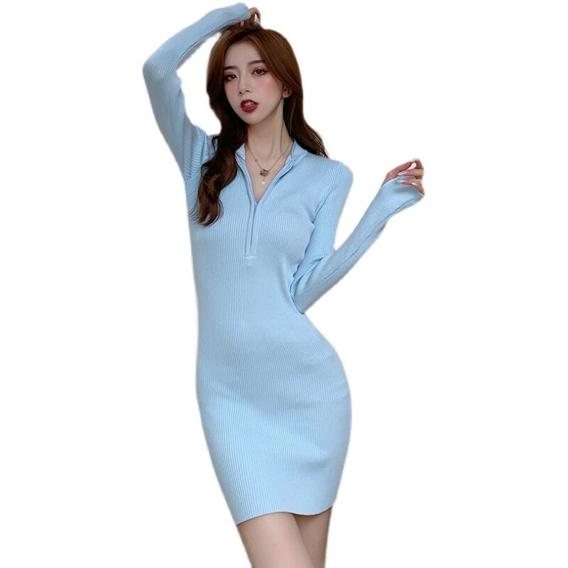 ニットワンピース ニット 収縮性 あたたかい 美脚効果 ブラック 黒 水色 ブルー Vネック 大人クール スタイリッシュ オトナモード トレンディ インポート プチプラ ランキング 大人綺麗 バックヒップスカート ワンピースドレス カラー スカイブルー ミニスカート 長袖スリム タイト 大人可愛い おしゃれ 大人女子 シンプル セクシー 無地 普段使い デート メンズライク 韓国デザイン オルチャン 海外ファッション ピッタリ お出かけ イベント 二次会 飲み会 合コン 細身え マストワンピ 人気商品
