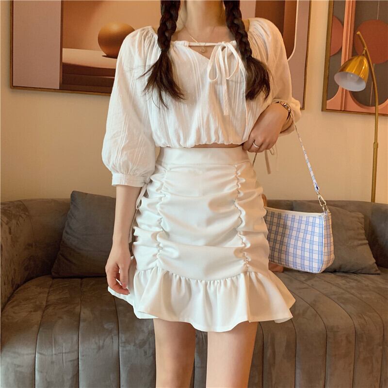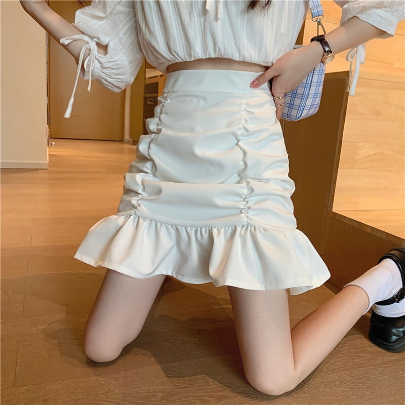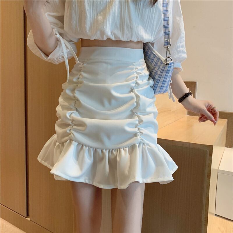スカート ボトムス ミニスカート ミニ ミニ丈 ショート ショート丈 膝上 襟付き マーメイド プリーツ ハイウエスト 大人可愛い シンプル 大人 お洒落 大人可愛い 大人女子 ラブリー キュート ガーリー 個性的 エレガント 存在感 無地 春 夏 結婚式 二次会 披露宴 バレンタイン 10代 20代 レディース 女性用 学生 通学 デート お出かけ 休日 パーティー イベント 着回し 韓国 韓国系 スタイル 脚長 合わせやすい 海外 外国 S M L 白 ホワイト 黒 ブラック モノトーン