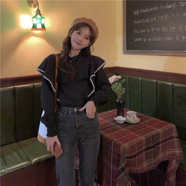 オシャレなトップスをお探しの方にはぴったりな一枚です!トレンド感溢れる配色で、どんなファッションとも相性抜群です。フリルカラーやボリューム袖、ウイングショルダーなど、こだわりのデザインが特徴のトップスで、気になるパーツのカバーにもおすすめです。