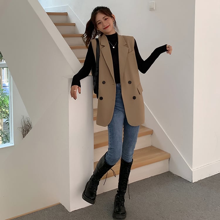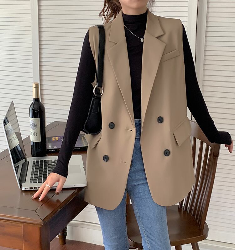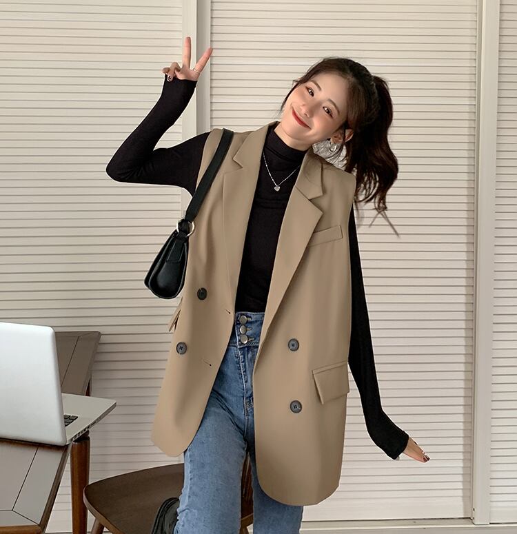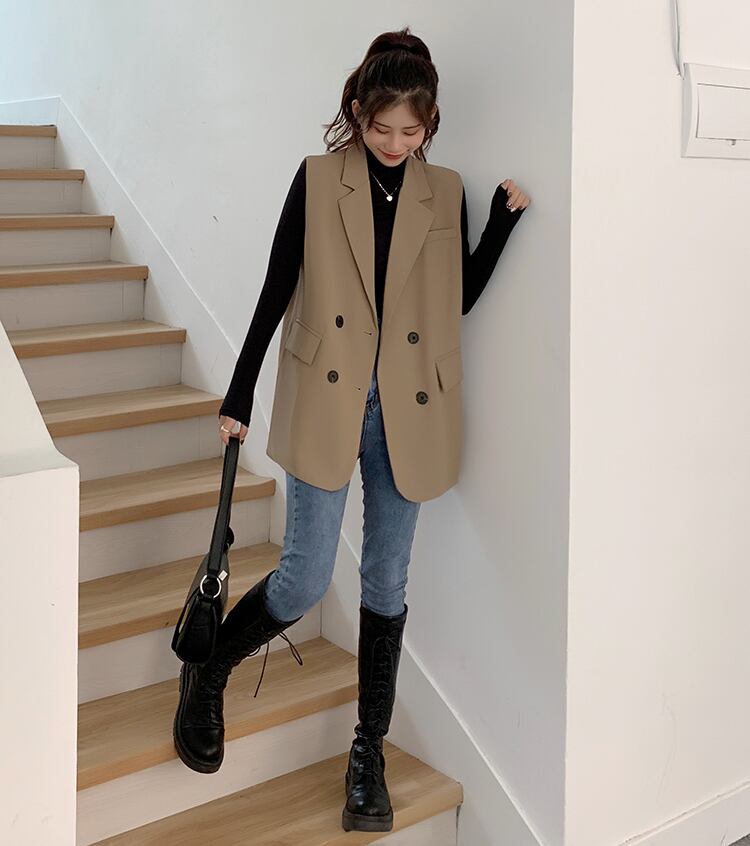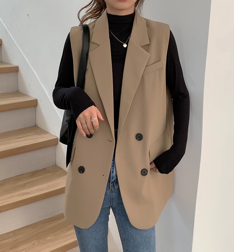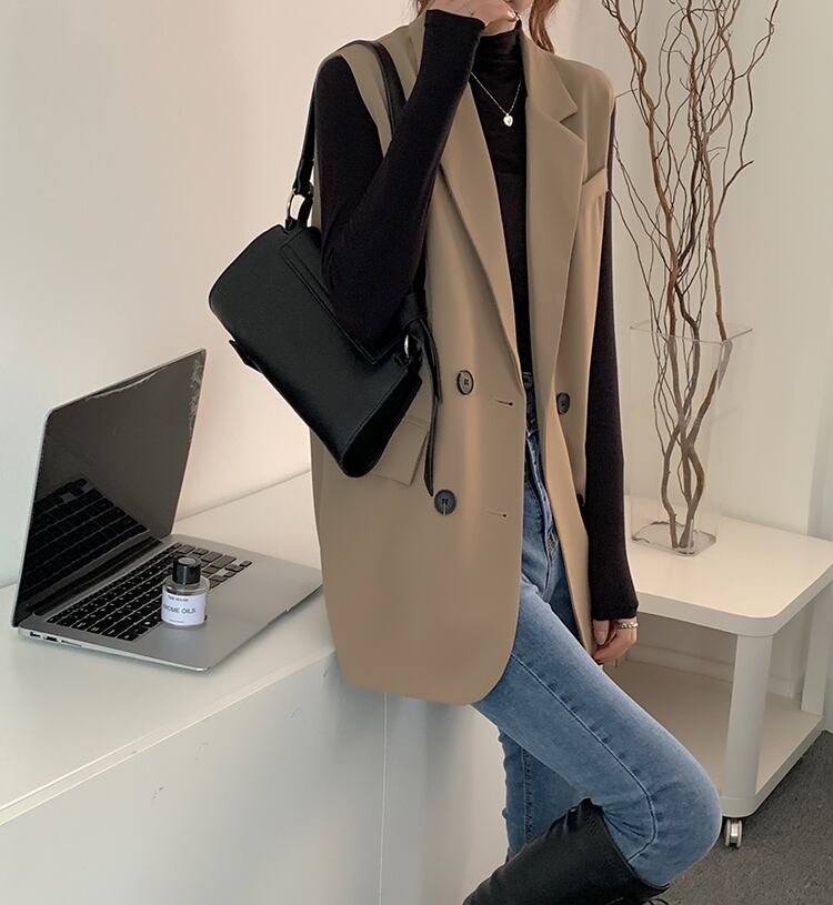テーラードベスト トップス アウター ベスト 膝上 ミディアム丈 袖なし ノースリーブ 襟付き ストレート お得 かわいい 大人可愛い きれいめ シンプル カジュアル 上品 おしゃれ かっこいい こなれ感 ラフ キュート クール モード系 無地 春 秋 冬 誕生日 入学式 卒業式 謝恩会 結婚式 二次会 クリスマス 通勤 通学 デート お出かけ 女子会 お泊まり パーティー イベント 着回し 普段使い 重ね着 韓国 オルチャン モテ フリーサイズ ブラック カーキ プチプラ 海外 インポート ゆったり