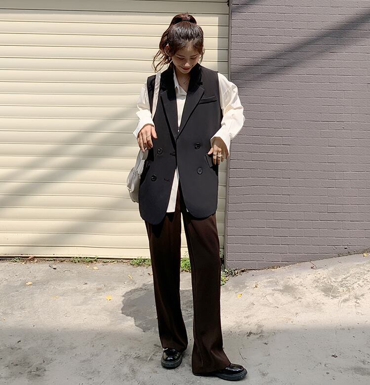 このベストは、韓国のトレンドにインスパイアされたデザインで、深いVネックが女性らしい印象を与えます。カジュアルにも、上品にも、大人可愛くもコーディネートできるので、重宝すること間違いなし。普段使いからパーティーシーンまで、様々なシーンで活躍してくれます。