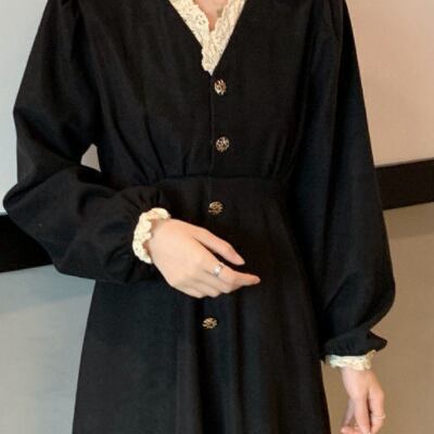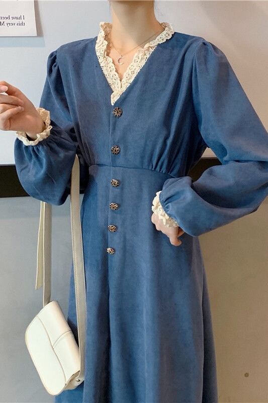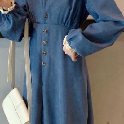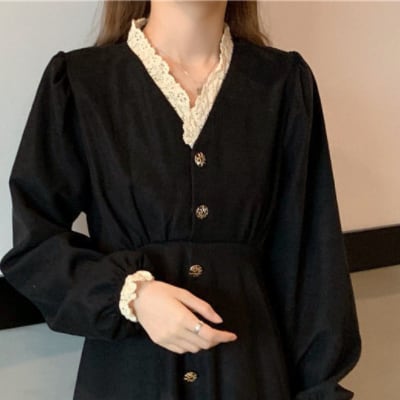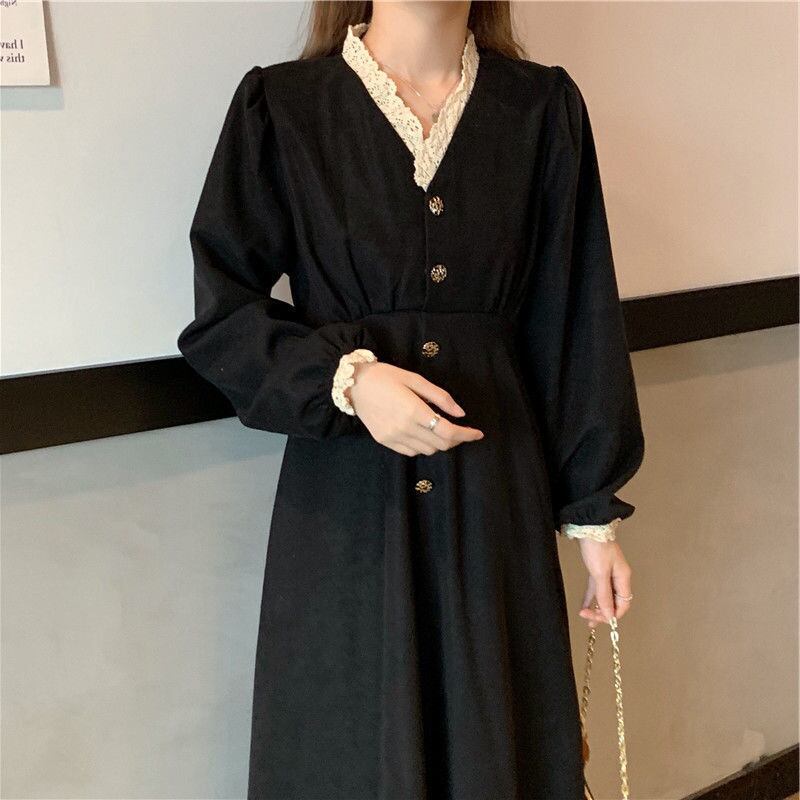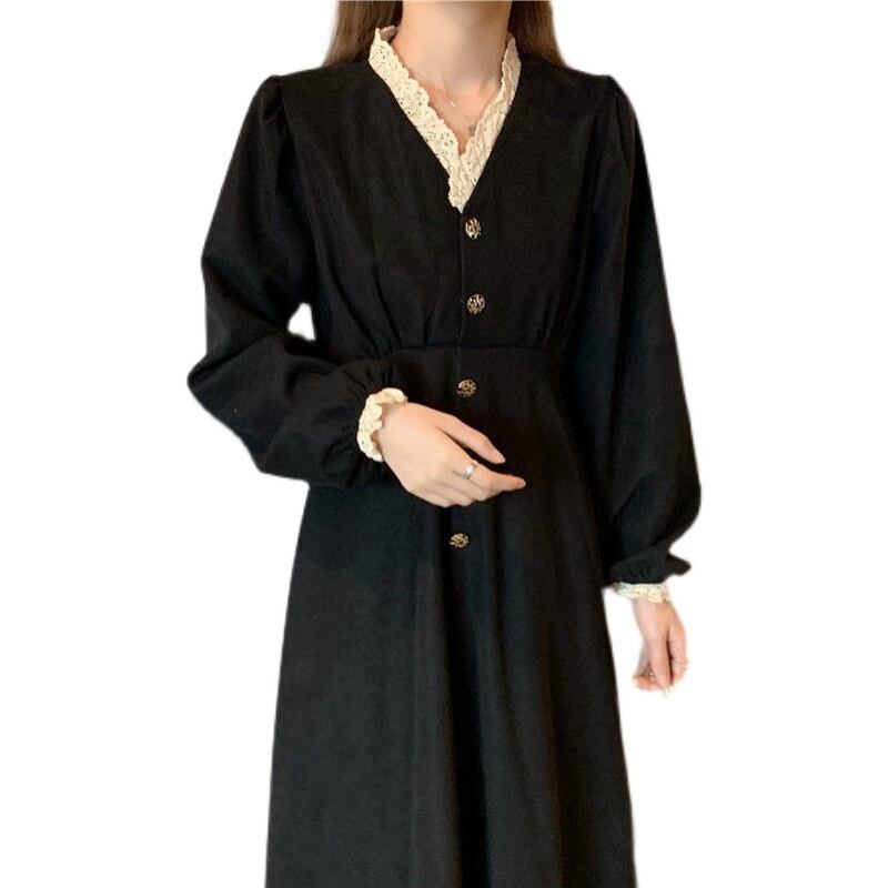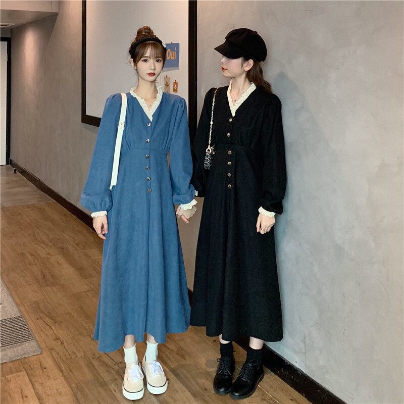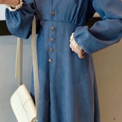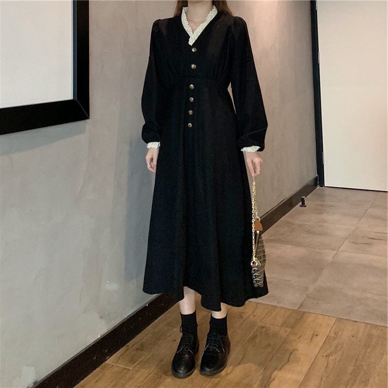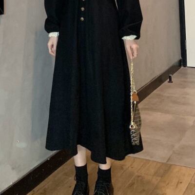 ロング ワンピース ドレス Aライン ブラック 黒 青 ブルー クローバーサイズ レトロ 鎖骨見せ デコルテ 膝下 ミモレ丈 7分丈 袖あり 長袖 かわいい 大人可愛い きれいめ シンプル 大人 上品 おしゃれ お洒落 大人女子 こなれ感 キュート ガーリー エレガント 主役級 存在感 春 秋 2021 レディース 女性用 学生 通学 デート 休日 お出かけ 女子会 イベント 旅行 着回し 普段使い 定番 韓国系 モテ トレンド 流行 インスタ映え おすすめ インポート L XL 2XL 3XL 4XL