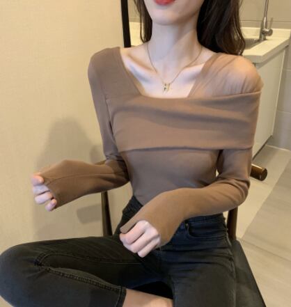 オフショルダーカットソー 魅せる トップス Tシャツ カットソー プルオーバー 袖あり 長袖 スクエアネック スリム 細身 大人女子 大人 上品 おしゃれ かっこいい クール きれいめ シンプル エレガント レトロ レトロ風 こなれ感 ラフ 個性的 デザイン 主役級 存在感 無地 春 秋 10代 20代 レディース 女性用 学生 通学 デート お出かけ 女子会 着回し 普段使い モテ トレンド ファッション コーデ 細見え スタイル ワンサイズ ブラウン ブラック アプリコット