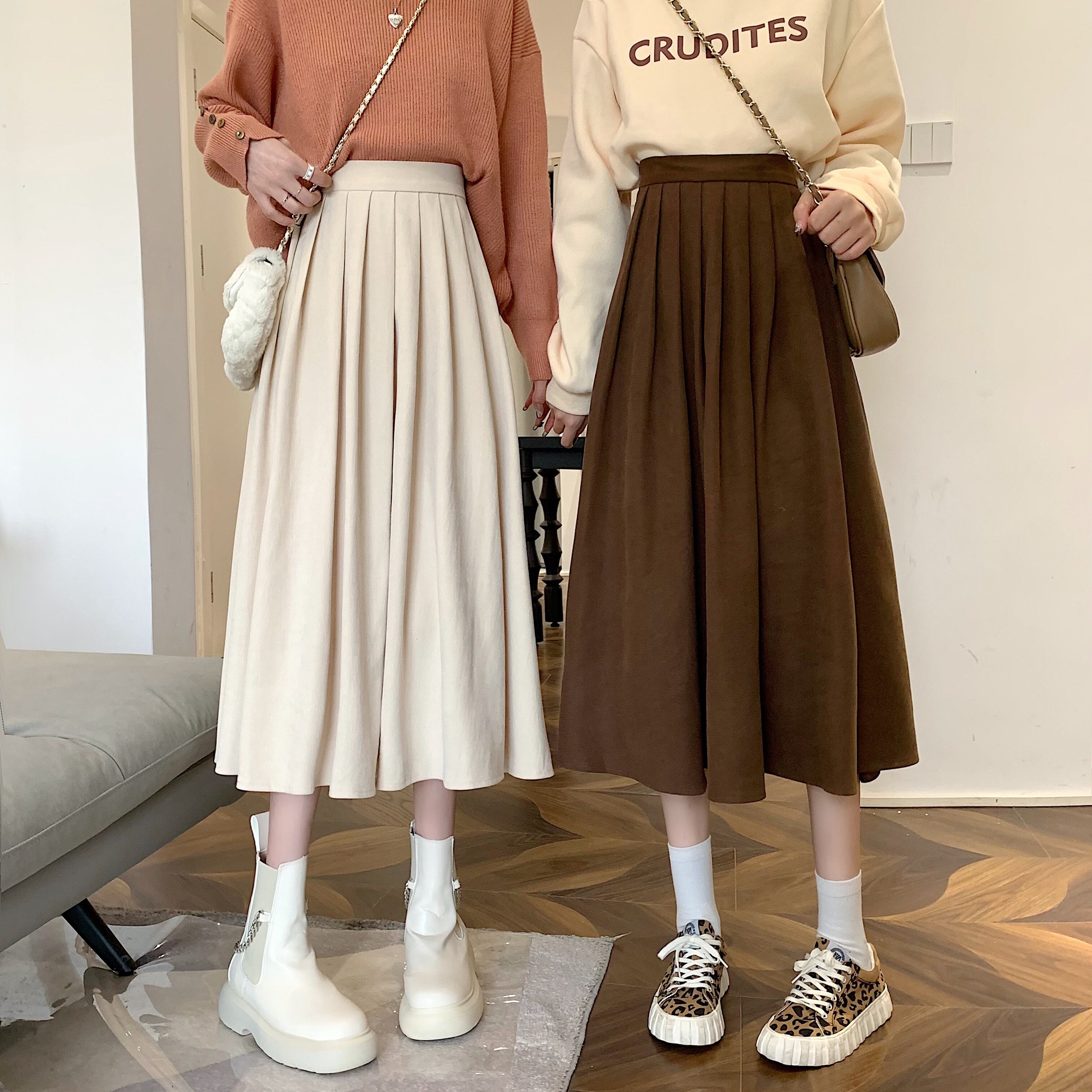 プリーツスカート Aラインスカート スカート ロングスカート フレアスカート ミモレ丈 ロング丈 フレア Aライン ハイウエスト お得 かわいい 大人可愛い きれいめ シンプル カジュアル 上品 おしゃれ レトロ 大人女子 こなれ感 キュート 無地 秋 冬 誕生日 二次会 クリスマス OL 通勤 学生 通学 デート お出かけ 女子会 パーティー イベント 旅行 着回し 普段使い 双子 韓国 オルチャン モテ 脚長 プレゼント 海外 プチプラ S M L カーキ ブラウン ブルー アプリコット ブラック