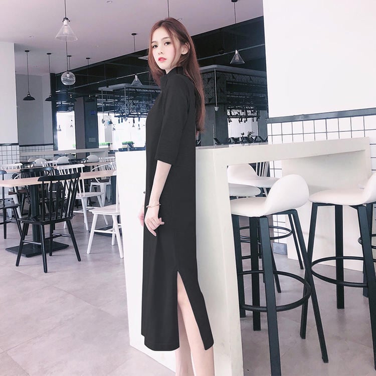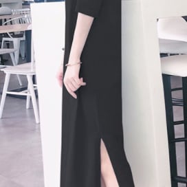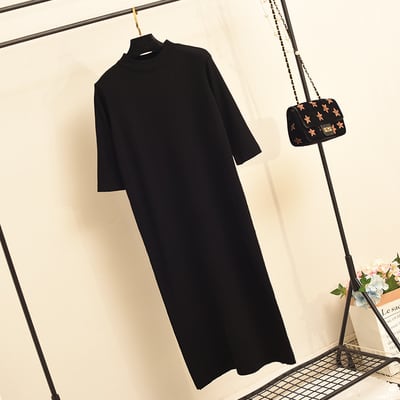 ニットワンピース 膝下 ロング丈 ミディアム丈 ミドル丈 袖あり 半袖 5分袖 五分袖 ラウンドネック クルーネック ストレート サイドスリット かわいい 大人可愛い きれいめ シンプル カジュアル 上品 おしゃれ 大人女子 こなれ感 ラフ 無地 春 秋 冬 誕生日 二次会 クリスマス レディース ママ OL 学生 デート お出かけ 女子会 休日 パーティー イベント 旅行 着回し 普段使い 重ね着 韓国 オルチャン モテ 体系カバー プレゼント プチプラ S M L XL 2XL ブラック
